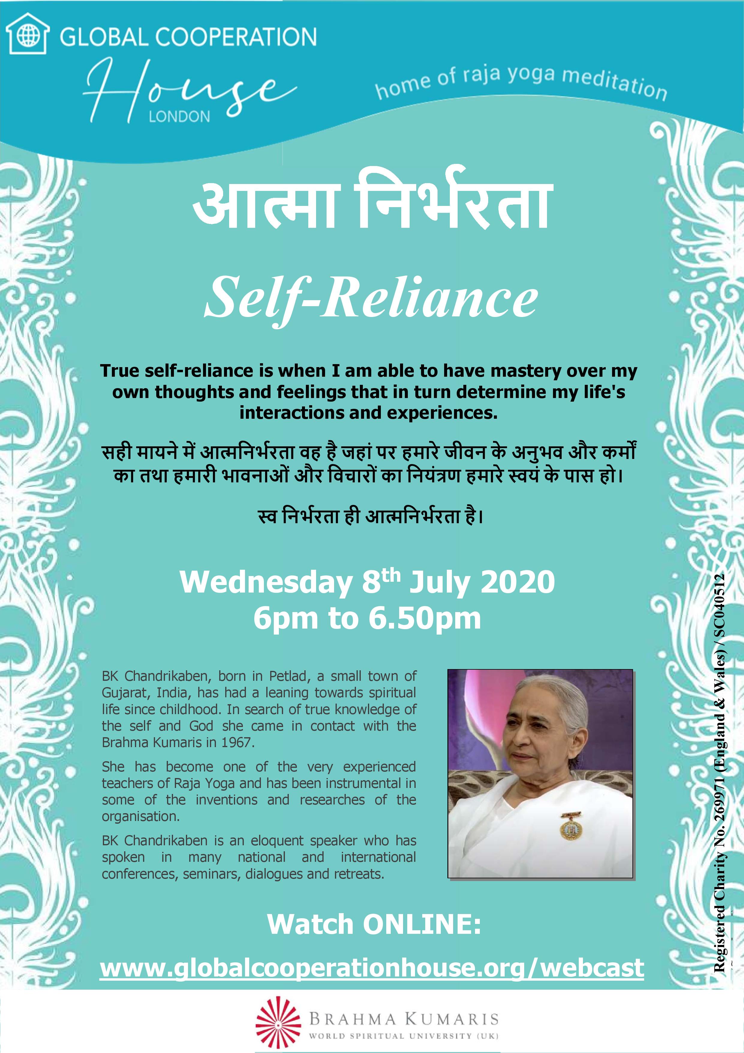 सही मायने में आत्मनिर्भरता वह है जहां पर हमारे जीवन के अनुभव और कर्मों का तथा हमारी भावनाओं और विचारों का नियंत्रण हमारे स्वयं के पास हो।