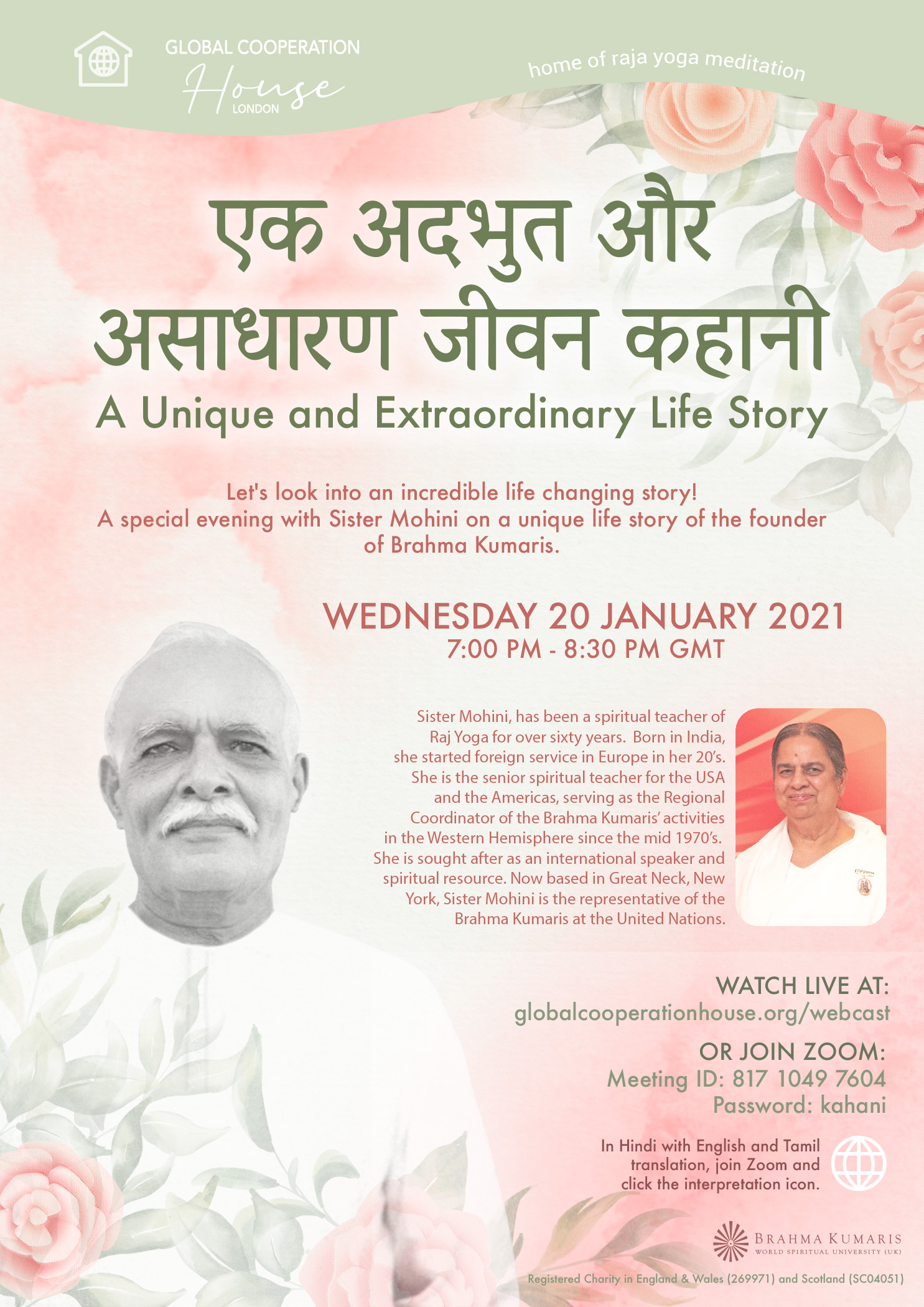 A special evening with Sister Mohini on a unique life story of the founder of Brahma Kumaris.