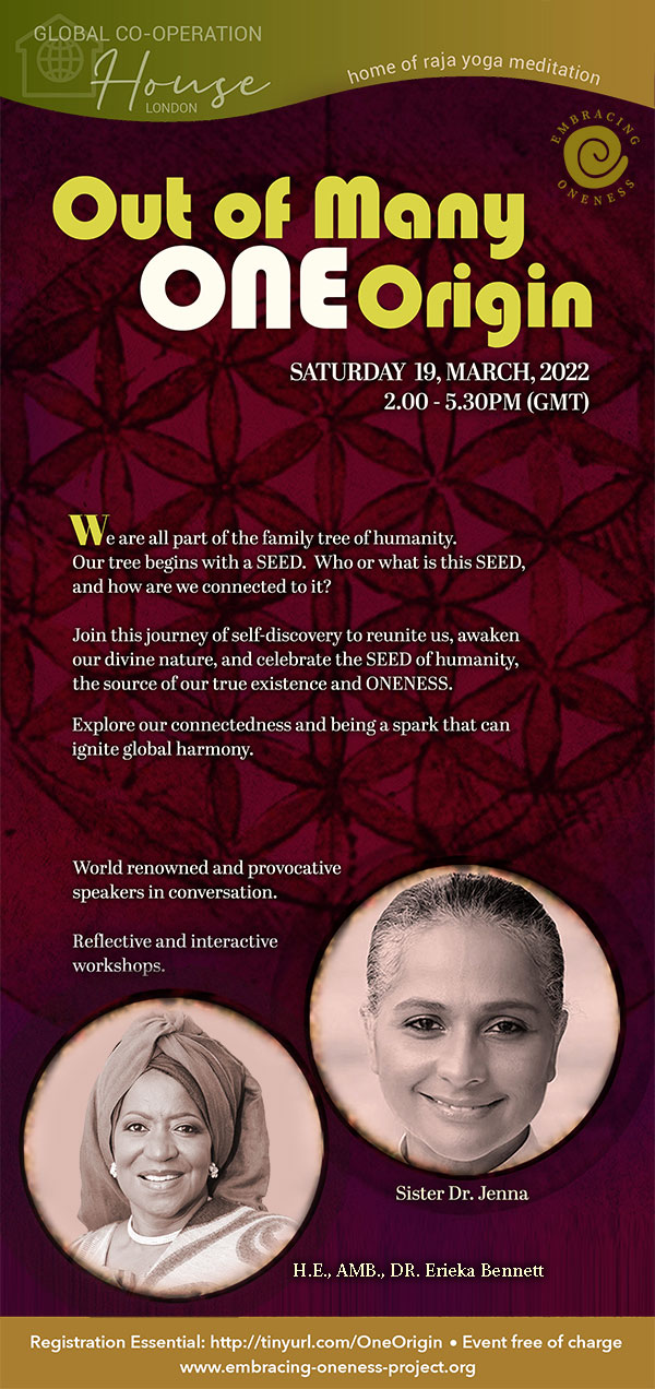 World renowned and provocative speakers - Sister Dr. Jenna, Director Brahma Kumaris, Washington and H.E. Ambassador Dr. Erieka Bennet, Ghana in conversation.