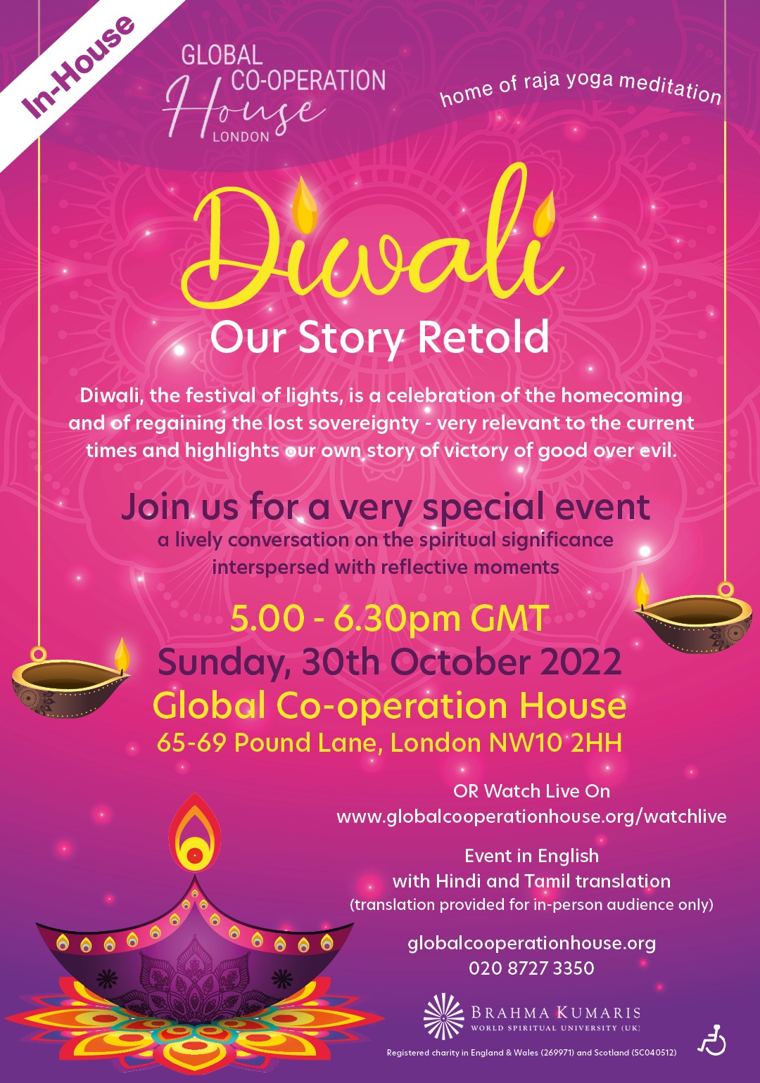 Join us IN-HOUSE at Global Co-operation House, 65 Pound Lane, Willesden, London NW10 2HH. Free street parking.